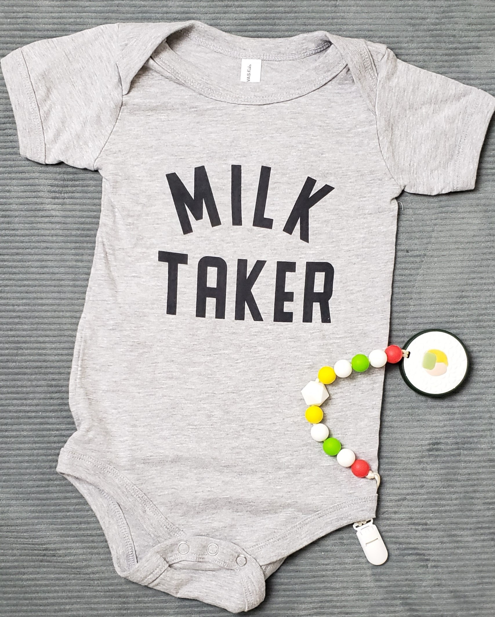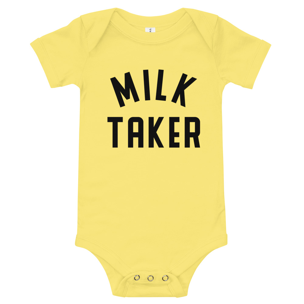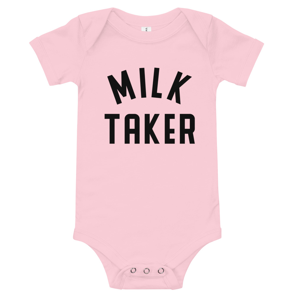 This adorable onesie will make make you smile every time you see it. Perfect for the baby that loves milk time! Pair with “Milk Maker” tee for mom!
